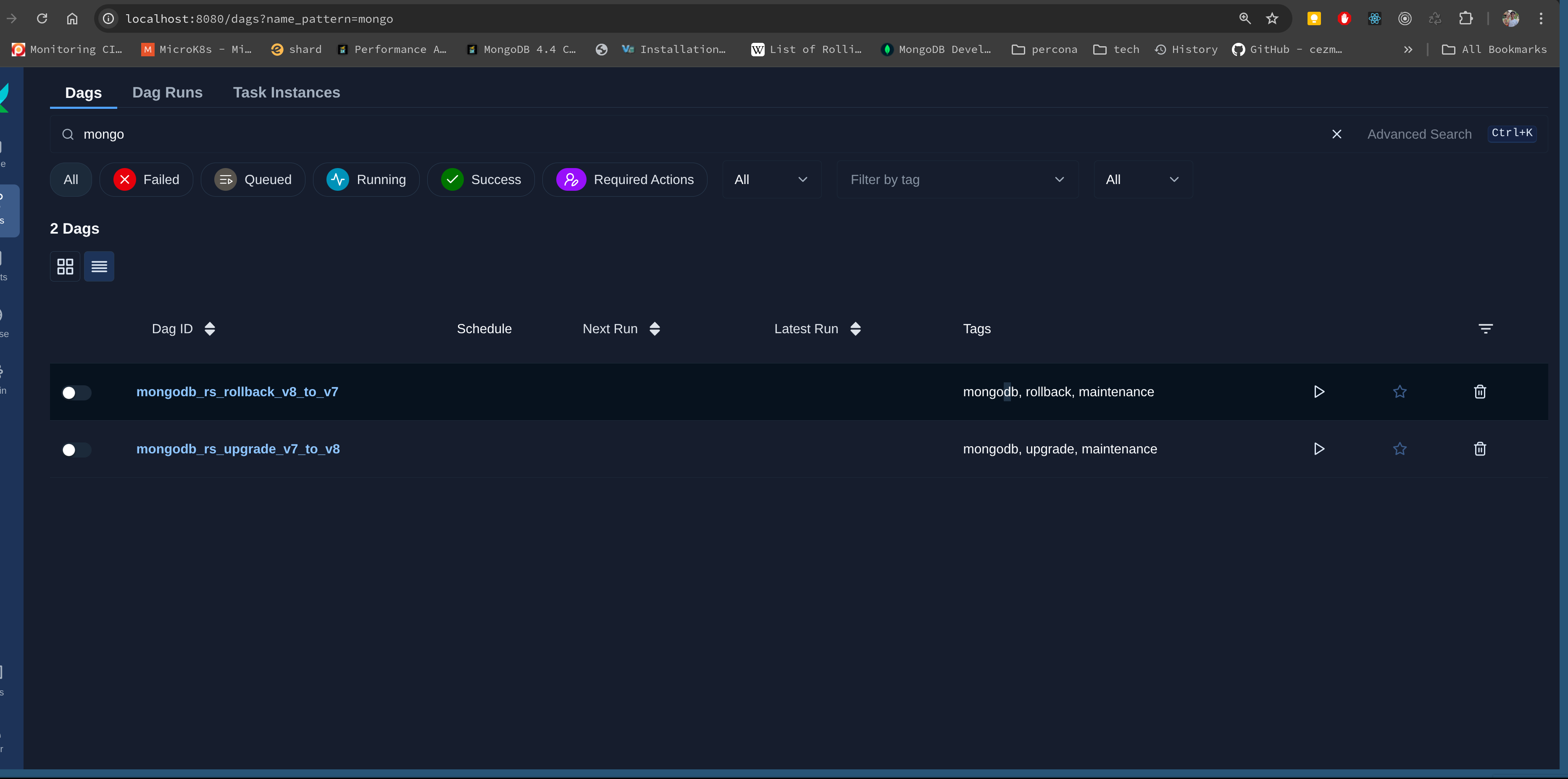 mongodb_rs_rollback_v8_to_v7 follows the same principles detailed in this implementation plan, except we downgrade packages and FCV. Feel free to test both DAGs interchangeably until you are comfortable to deploy in production.